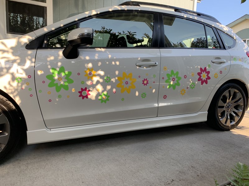 Wow, I have become lax about my daily postings, but I am keeping Disco's SS up-to-date. I am just not setting aside time to post, but have been productive in other ways. You would think the 100 degree heat would keep me inside doing inside tasks, but I did go rafting (without Disco) on Sunday, and washed/detailed my car Monday and yesterday finally applied the 'Flower Power' vinyl stickers to the Subaru I bought last year before my move from VA to OR.