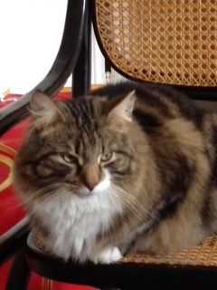 I fell asleep last night with Gabby cuddled up next to me. She woke me this morning a few minutes before 5 AM for more cuddles and purrs. Gizmo is learning to sit still long enough to cuddle -- he still has kitten energy and doesn't stay in one place for too long. He's also discovered toes. He likes hiding under the bed and swatting my feet or charging from where he may be entertaining himself to swat a foot as I go to sit down. Every morning, as I pull back the covers, he has to check out my toes and I often get my toes kissed. He's such a silly kitten. (NB: He's a 13 lb kitten and still growing!)