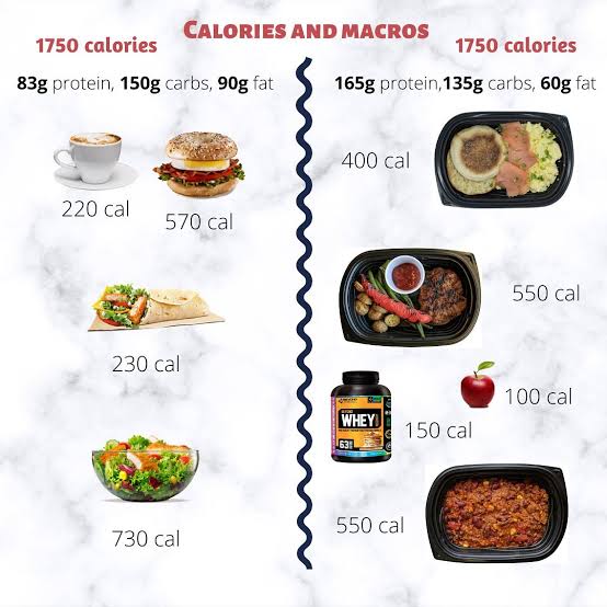 Another example is in this image. You could consume 1750 cals on 2 different days based on the type of meals you have. The same thing happens with the chicken and salmon (or the other) flavours of Dr. Elsey’s kibble ( same amount of total cals but from different amounts of macronutrients )