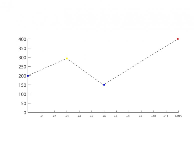 Check out the awesome graph I made. We know PMPS, +3 and AMPS; +6 is a guess at a decent drop that could trigger a bounce. She would have to do something like that and it's nothing I've seen her do before. It gets even more unlikely if we're saying she's dipping down to the greens.
