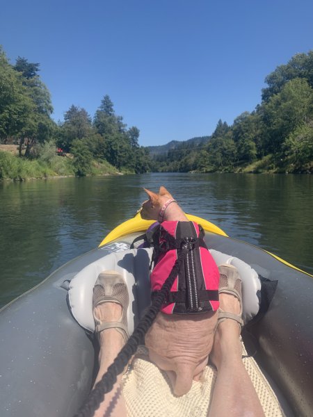 Well, Disco got up to his old tricks today (Sunday) and while he seemed like he was going to have a similar day as Saturday, he threw a surprise BG of 30 at me! He had a LC snack before I got on the river with him for a short 15 minute float in a quiet part of the river. He did great and seemed to enjoy the breeze and sniffing the air--photos to follow!