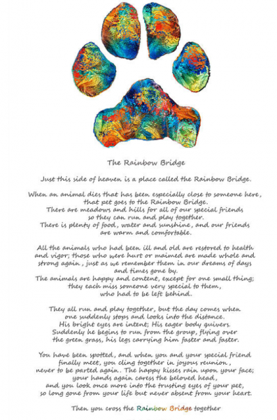 Does anyone here have a good copy of the Rainbow Bridge poem? I thought I had a decent no ad copy and cannot find it.