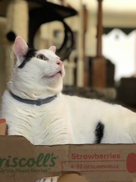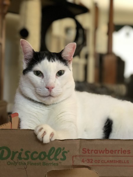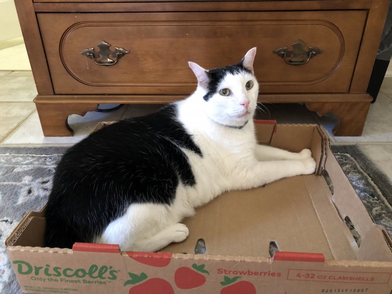 Went to Costco and brought home a box. I haven’t seen Moe hang out in a box in *ages*. You can definitely see his acro face in these pics.