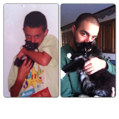 What a journey it has been with the little guy. Mason had begged for a kitty. We moved to Tulsa the week before first grade and we got Turnup on his first day as a surprise. He already knew what he would name her. "I will name my kitty Turnup. Then when you say 'Where's the kitty? Oh she will turn up.'" The humor of a 6 year old. :lol: Turnup ended up attaching to DH and didn't pay any attention to Mason.