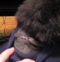 BK had a lump removed in Oct.2008. It was on the back of his neck, just below the collar. To protect the incision, I quickly made him a little pullover shirt, from an old pair of leggings. They were a cotton/spandex blend so the fabric had some stretch. I just cut about a 10" section of one of the legs, starting at a place where the circumference looked like it would be a good fit at BKs neck. Then I eye-balled where I thought the "arm holes" should go and cut 2 holes. Then I slipped it over him and it worked like a charm. He did work on "customizing" the armholes toward the center of his chest, but the shirt held up and kept the incision safe.