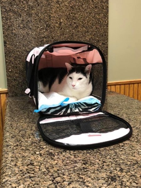 Aw, man. One year ago today I took Moe to the vet to find out why he was suddenly acting like an old man....barely moving, drinking and peeing a ton. I was expecting to hear a CKD diagnosis but my vet suspected diabetes. We got our diagnosis on Sept 1, 2019. Pic of him waiting to see the doc last year.