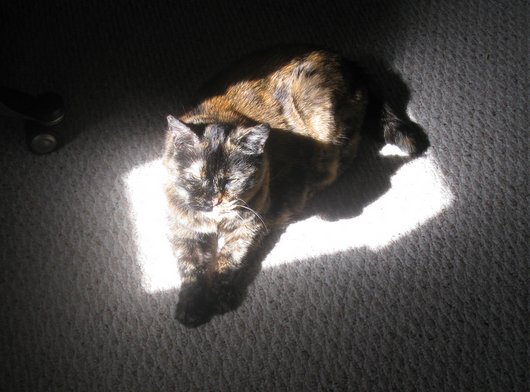 A happy appy story: Chyna sleeps quite often at night next to my bed at the top of her cat ramp. Her timer is set for food at 4am and a few nights ago I woke up just before that for a bathroom visit, went back to bed and petted and kissed Chyna (of course) so she was purring. Then I laid down to go back to sleep and heard the timer go off. Chynas purring got super loud and she promptly went down the ramp to the auto timer to eat. It made me smile