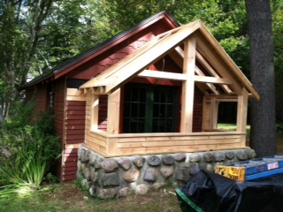 It's going to be great when it gets finished. We're waiting on the glass. It will be the same color red as the garage. The stone foundation is from the old greenhouse extension, which was rotting away.
