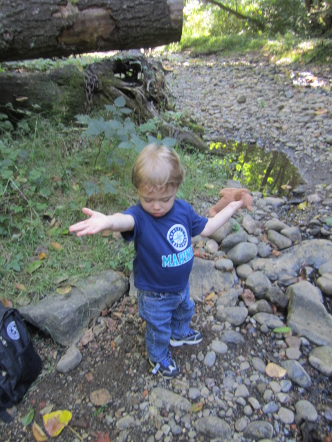 Nicholas and I had a great time today - we went to one of his favorite rivers and spent the day there, It was a little cool when we got there, but sunshine was abundant and the afternoon was really great. He got to throw rocks to his hearts content, eat lunch on the river's ban, wade in the river up to his knees. He has a grand time. I will post some photos in Mannie's condo tomorrow.