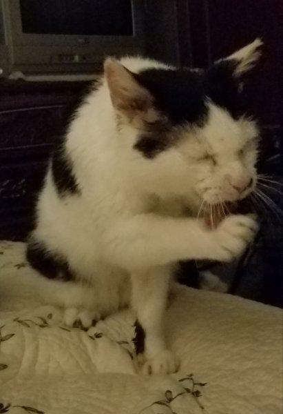 Wow! I guess my body isn't used to getting to sleep that early so I woke up at midnight. Grandpa was asleep, but he heard me move and jumped up on the bed, laid down and grabbed my hand with his paw. He is alert and very engaged, something he hasn't been the past three nights. He's 313, which is much higher than previous nights, but he seems to feel good. I've turned my alarm off.
