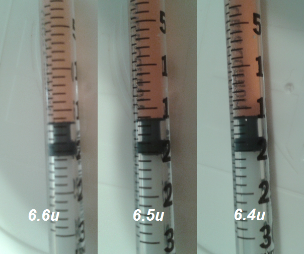 I'm using the U100 syringes that have .2 increments. I can go to 6.6U on the next increase, no problem.How confident do you think you could measure 6.5U if you get a yellow for PMPS?![]()