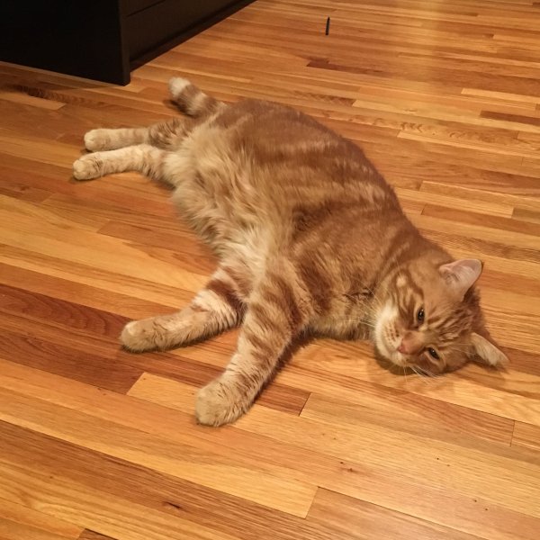 I just did a welcome post, but I also wanted to post here. My cat Nacho is a 5 1/2 year old orange tabby cat.