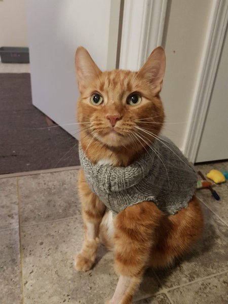 Attached is a picture of Simba with a homemade sweater, to keep him from trying to bite/lick his libre montior off