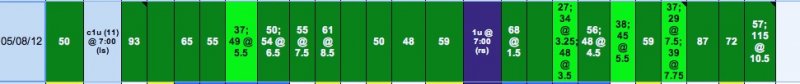 Many greens today. He hit a 70 at +6 and 61 at +7. We Reduced the insulin to 4.5u.