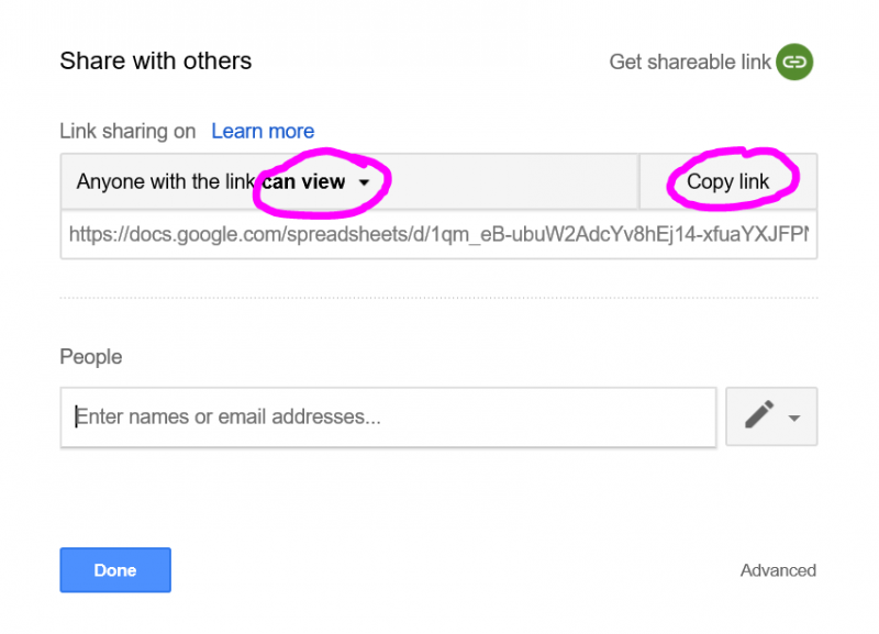 The link in your signature isn't correct.....Go to the top right of your spreadsheet and click on the blue "Share" ....a new box will pop up. Make sure it has "anyone with the link can view" and then you can click where it says "Copy link" to "copy".....then you come to your signature box and "Paste" the link you just copied.