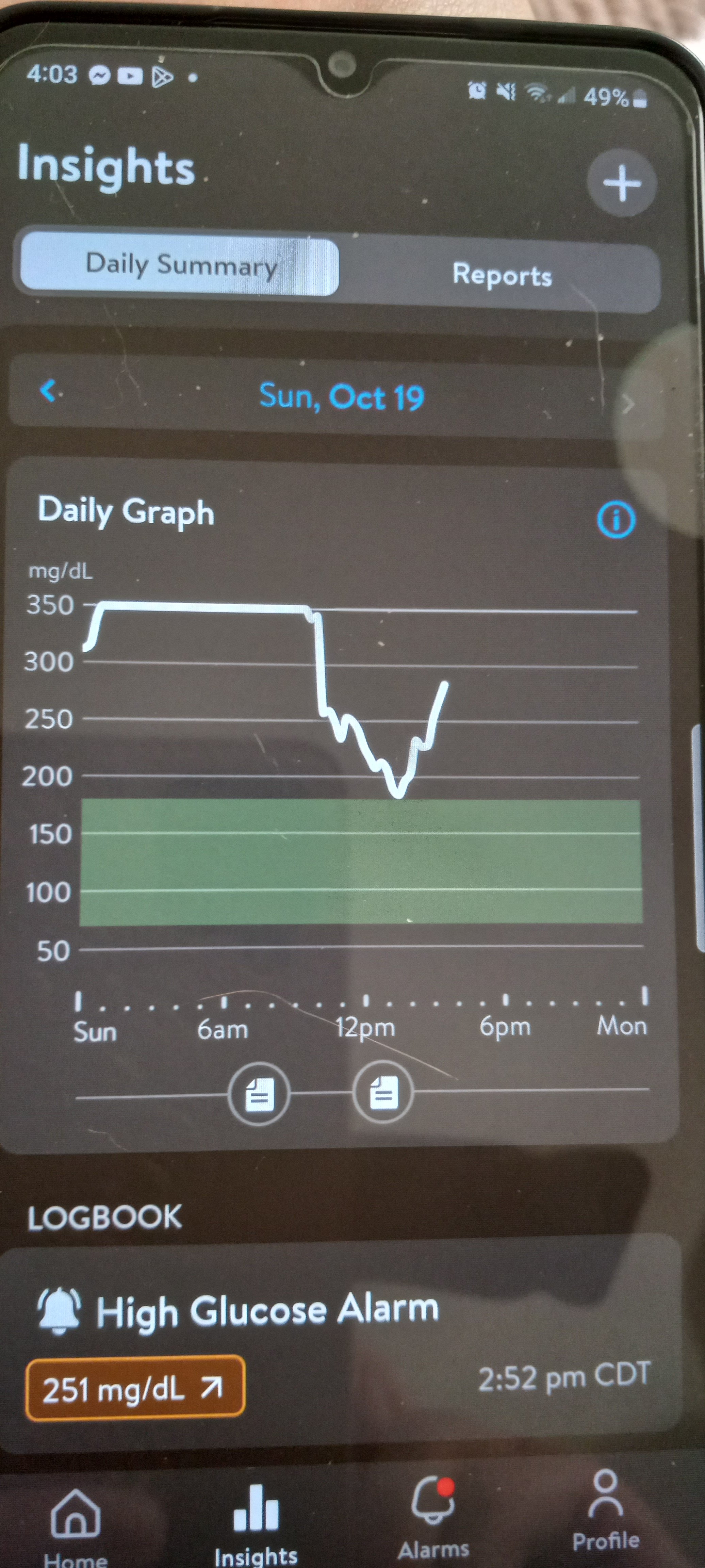 If she isn’t in the usual place at the time of this evening’s shot, you could consider a reduced dose for the evening. You also could delay her shot until she comes up in BG (although this will alter her future shot times and would have to be adjusted gradually back to her usual shot times.)