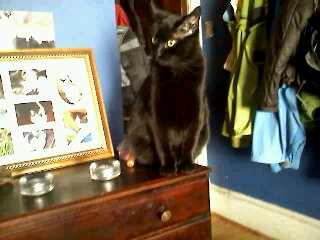 Duchess was extremely comfortable from the second she arrived here. She immediately became my shadow. Over time she would sit on my lap (for catnip), and even let me hold her for a short while. She was my alarm clock in the a.m. by kneading on my bladder or dive bombing me from the top of the piano :lol: . She left toy presents at the door each time I came home from work. She was very respectful of anything I have out related to Latte, always walking delicately around or over photos. Sometimes even kissing them.