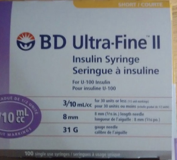 I use BD Ultra fine syringes and buy a box at a time. The box looks like this