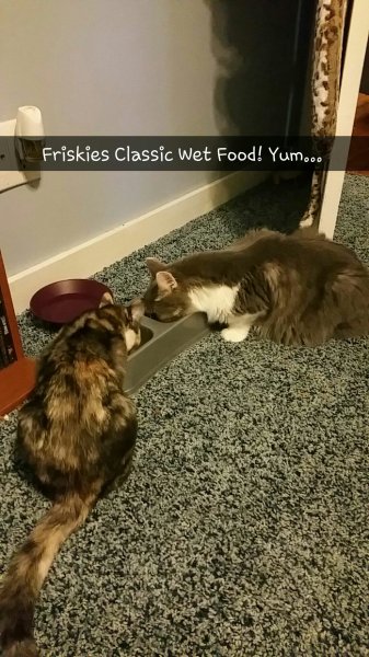 I take the online advice and begin the progress of transitioning my cat to wet food (Friskies Classic). By the way before this happened I had no idea dry food was bad for cats! Lol..