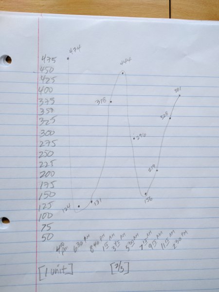 So! I've been doing testing for a proper BG curve since 4pm yesterday. Where to go to plot it on a computer? Excel? Google docs? Shodor.org? Or just do it on a piece of notepaper and photograph it? Word? Retired paralegal here, mathy stuff not my strong suit, though I'm proficient on Excel.