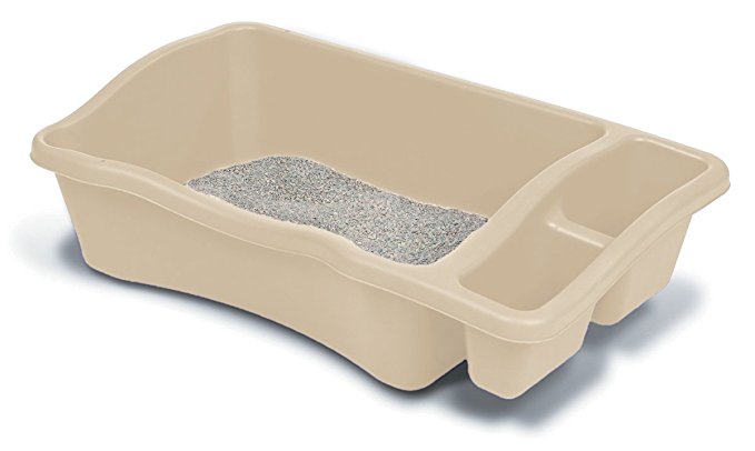 we have done fine with 4 (currently 3 since 1 was barely used) of the $20 (on A) giant petmade litter pan that are huge inches) and look better and are taller than the plain cement pans we saw at store, plus they have side cubbies holes to hold your scoopers.