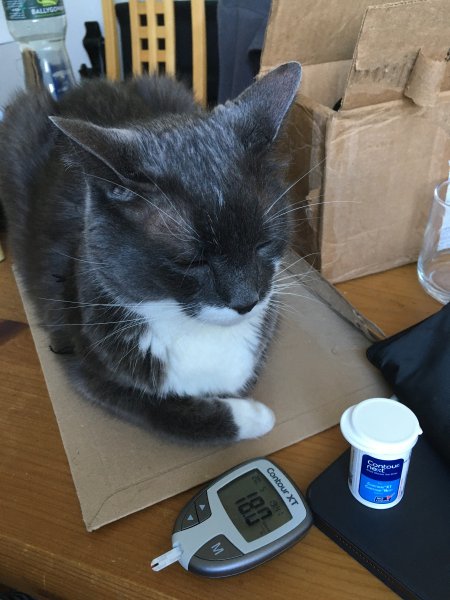 I just cant fathom looking her in the eye again. It was a huge mistake that she never took responsibility for. It was sloppy doctoring. And before that, sloppy supergluing of his first monitor. She took a full week to tell me his blood results, which she received the next day. She took three weeks to get the insulin and monitor. I don’t think she really cares what happens to Merlin, even though she has left a message for me to call her today. Her text the day after our saga was callous and uncaring. She gave up on finding syringes and told me to do it. I think, if anything, she is just worried about losing our business. It’s such a shame because she is five minutes from home. I just don’t think I could trust her to do the right thing anymore. She proved too many times that she is either overworked or not dedicated. If she had just expressed some kind of sympathy for what we went through, I might forgive her. But I don’t want to go back there ever again now. I understand that vets are under a lot of pressure and that saying anything that makes her look responsible for the overdose might jeapordize her business. A simple how is he doing would have gone a long way.:(