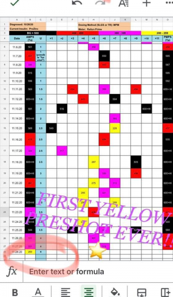 Okay, so. Since we bumped Nico up to 4.0u he seems to be holding fairly steady (in the minimal data I have because we just changed it..) in the 300s (PURPLE!!). I’m assuming it’s good to see less huge jumps throughout the day, while also hoping to get him down a little further— maybe steady in the 150-250 range?— does that sound correct? Can someone talk to me about what I should or could expect to see now as we get closer to having a more correct dose? Just curious. I feel like right now I’m so thankful for 300s, but also have zero idea what to expect next, or what to hope for. Hoping someone knows the answer(s)!