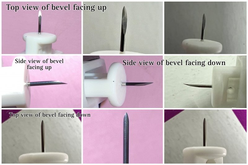 Adding on to what Ale has already shared regarding positioning the bevel, here’s a zoomed-in photo of the bevel of a lancet in various positions. I use a lancing pen since my hands are a bit unsteady.