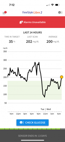 So... what to make of this? That 186 is 30 hours after her last dose of Lantus. I also want to say... the Libre is great, it's amazing to get the numbers like this and get some insight into what's going on this frequently.