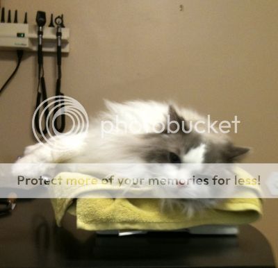 *After DM - Now use the Flovent inhaler w/ the cute, funny yet daunting AeroKat mask every other day and no asthma attacks whatsoever. Hoping the asthma will cease when he transitions to a mix of the Fancy Feast Classic and raw Feline's Pride.