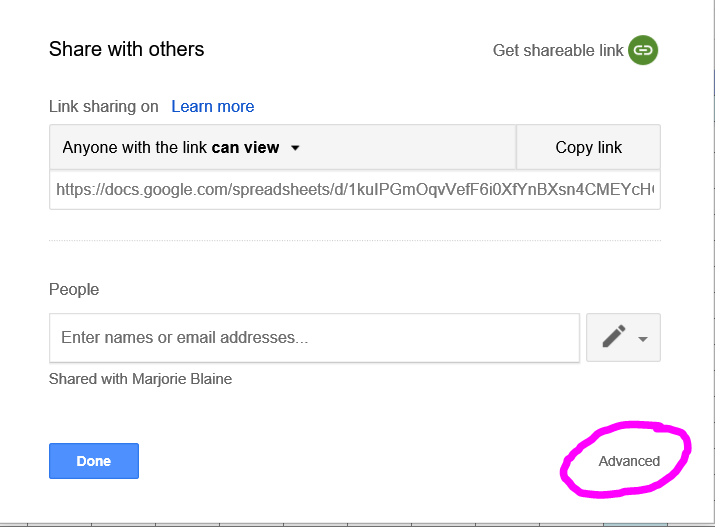 After you click on "Advanced", you'll get another box that will give you the option of "Anyone with the link can view"