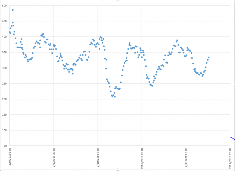 The sensor takes a reading every 10 minutes, so we have a lot of data. We also verified the sensor with prick testing. The sensor has yielded a lot of rich data over two weeks that we are at a loss to interpret.
