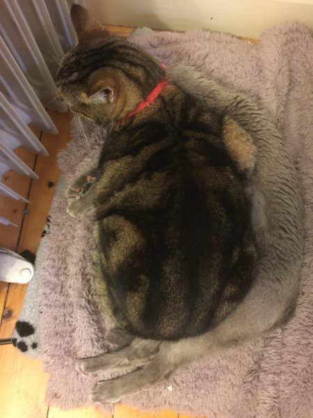 Girlie's approach to food is also why Max, my moggie, is currently living in exile in the rest of the house: he's a hoover and will inhale anything in sight. Plus, he tries to sit on her head when I'm testing. They have play dates in the garden, and he can come in during the hours when I've taken her food away. It's all too entertaining...sigh...