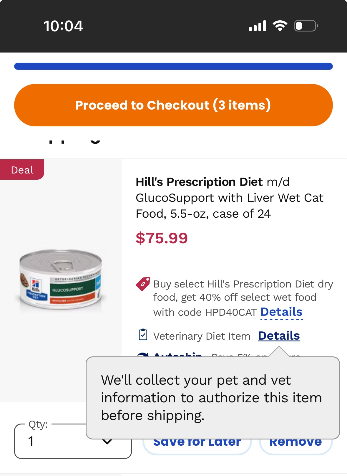 Oh, and yes, you can buy Hill's m/d and other so-called prescription food at Chewy and some other major retailers (I think I looked into PetSmart once when Chewy had a shortage) ... it requires a one-time "vet's authorization" (not a formal prescription), which you get by submitting your vet's contact information through the site.