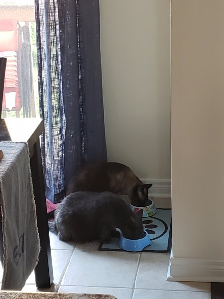 Yes, he had some dry a couple of hours ago and then the automatic feeder turned into an empty bowl at 5, so that I have plenty of time for them to be hungry again, especially Blazey Boy. Fingers crossed it will work.