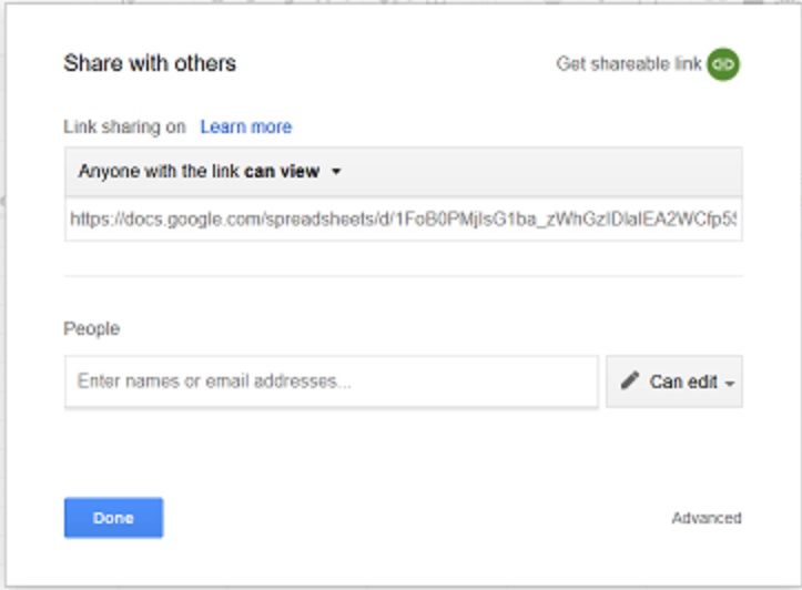 Step 4: Sharing the spreadsheet.