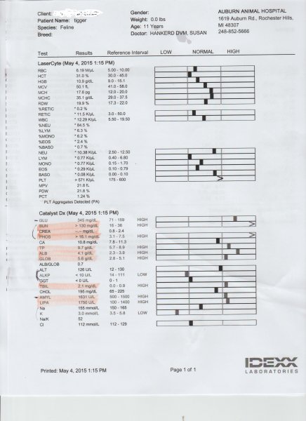 The vet told me, Tigger is in kidney failure and needs IV Fluids asap