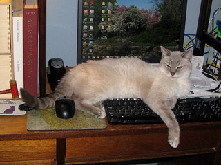 Unfortunately, he is not doing well. He has a degenerative neurological disease of some kind and is unsteady, may be in pain, and he is not eating enough. Sometimes he seems ok, but other times he tumbles off things, like my desk (that he is sitting on in the photo) and now he doesn't land on his feet all the time - and I think that really rattles him.