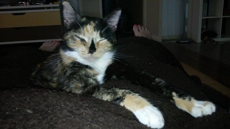 She looks older than 7, but she's not. I guess this disease makes them look sort of "ragged". I don't think she was grooming herself while she was there for the 3 months. She grooms very often now. Her fur is improving a little.