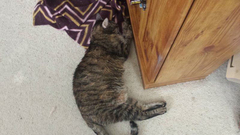 How are you? Hope this evening find you good. Well I got a closer look at her poop, it's not poofy, it's got about the same consistency of toothpaste and comes out like that. It is also light brown, not yellowy like I first thought. We haven't really changed food, but when she won't eat I give her whatever she will eat, not always good for her. She's doing good since mama is away. Last nite I slept on the couch, and woke up when she was climbing back down the arm after sitting there looking out the window. She only does that when my wife isn't here. She's been somewhat subdued, but she is eating and right now waiting for me to cut up some boiled chicken I just made. I do think my wife gets Snicky's nerves edgy. Yesterday when she was leaving, she told me as soon as kitty heard the garage door opening, she fired off under the bed, thinking she was going to the vet! Even if my wife babys her, I still think she's edgy because my wife is just here. Guess I better kick my wife out.